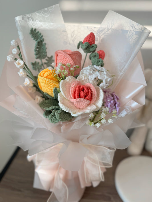Discover the charm of forever-blooming beauty with our pre-made crochet flower bouquets. Each bouquet is thoughtfully handcrafted with soft, high-quality yarn, capturing the delicate details of real flowers while offering the durability to last a lifetime. Perfect as a ready-to-gift present, a touch of décor for your home, or a meaningful keepsake, these bouquets arrive exactly as pictured — no waiting, no custom order time. Just pure, handmade loveliness ready to brighten your day.