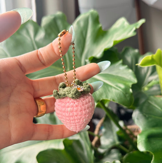 Handmade Crochet Strawberry Keychain with Daisy Charm β Cute Cottagecore Bag Charm, Kawaii Fruit Keyring Gift ππΌ
